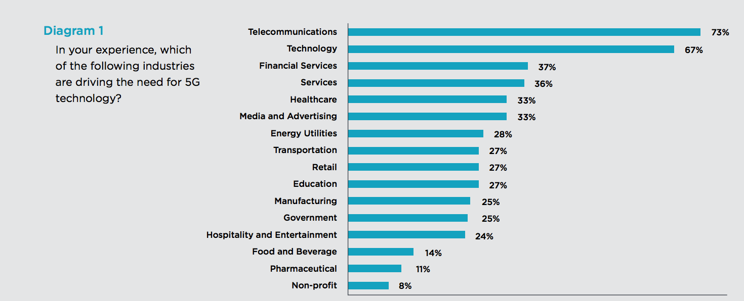 電信、科技和金融服務(wù)是推動5G技術(shù)需求的三大行業(yè);