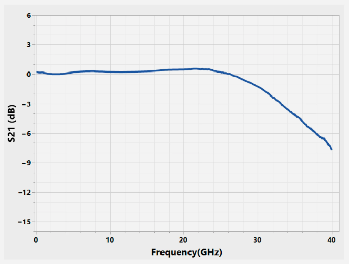 圖10. 100G VCSEL在75°C襯底溫度下的S21響應(yīng)曲線,其?3 dB帶寬超過32 GHz。