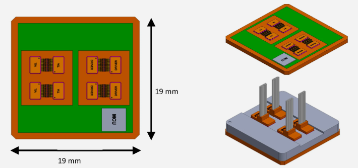 發(fā)射與接收部分可分別封裝為獨(dú)立的引擎模塊。VCSEL與光電二極管陣列可通過引線鍵合方式連接至引擎基板,并借助低成本的塑料陣列透鏡,實(shí)現(xiàn)光信號與多模光纖的垂直耦合。
