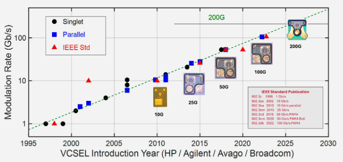 圖1. VCSEL技術(shù)代際演進(jìn)。