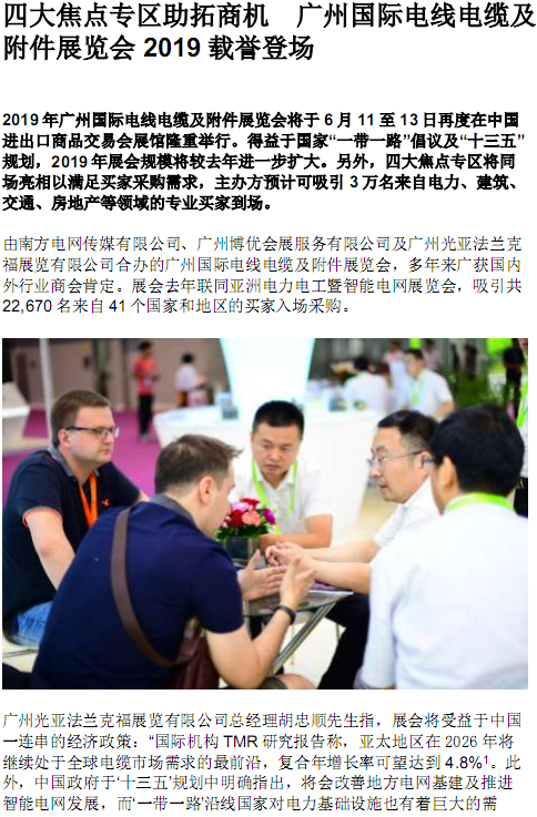 四大焦點專區(qū)助拓商機(jī) 廣州國際電線電纜及附件展覽會2019載譽(yù)登場