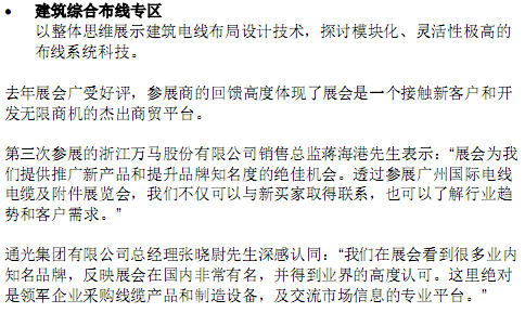文章標(biāo)題:四大焦點專區(qū)助拓商機(jī) 廣州國際電線電纜及附件展覽會2019載譽(yù)登場