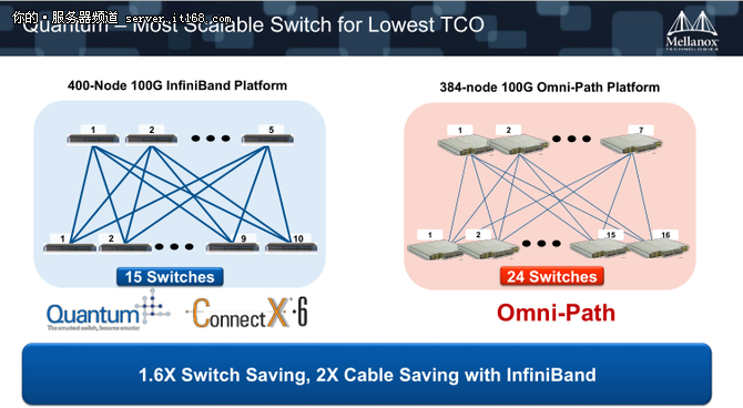 英特爾一直是Mellanox在IB網(wǎng)絡(luò)領(lǐng)域的最重要對手。其實(shí)英特爾進(jìn)入這一領(lǐng)域的時(shí)間并不長,但是憑借著整合處理器、加速器所帶來的價(jià)格優(yōu)勢,相比Mellanox來說在整體解決方案層面可以提供更優(yōu)惠的價(jià)格給客戶。為此,Mellanox也從應(yīng)用效率、總體擁有成本等角度為客戶進(jìn)行分析,Eyal Waldman更是直言不諱其中的癥結(jié)所在——