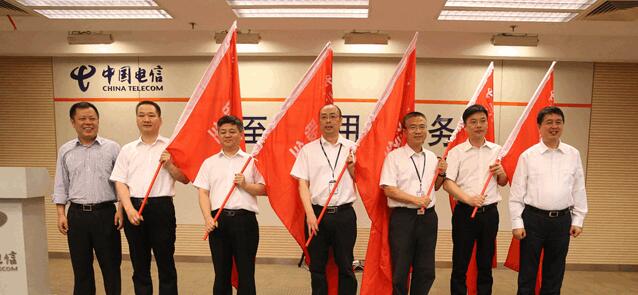 圖:6月3日,浙江電信召開(kāi)G20峰會(huì)保障決戰(zhàn)誓師動(dòng)員大會(huì)。圖為中國(guó)電信浙江公司總經(jīng)理盧耀輝(右一)和副總經(jīng)理張濤(左一)在會(huì)上,分別為網(wǎng)絡(luò)建設(shè)保障隊(duì)、應(yīng)急搶修保障隊(duì)、應(yīng)急物資保障隊(duì)、網(wǎng)絡(luò)安全及安全生產(chǎn)保障隊(duì)、后勤響應(yīng)保障隊(duì)等五支通信服務(wù)保障隊(duì)伍授旗。