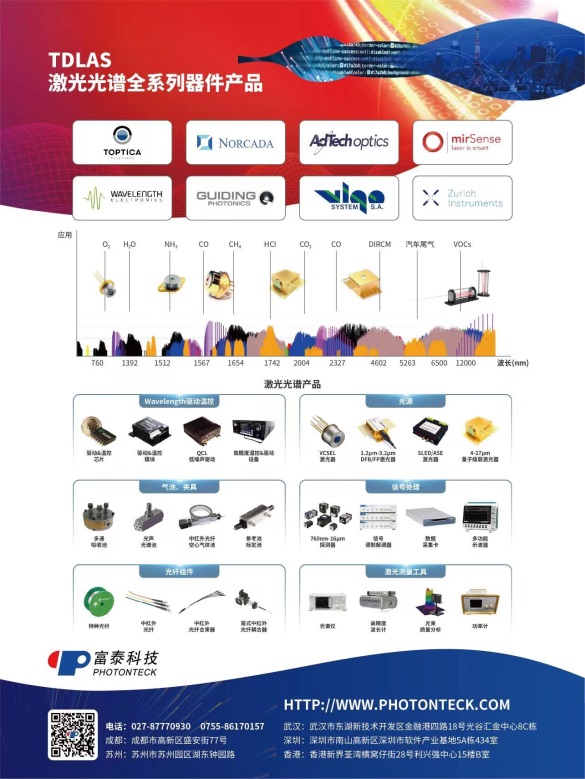 近年來,激光光譜技術(shù)的研究和應(yīng)用已經(jīng)成為國際上光電領(lǐng)域的一個熱點,另外隨著窄線寬半導(dǎo)體激光技術(shù)(QCL量子級聯(lián)激光器、ICL帶間級聯(lián)激光器、DFB分布反饋式激光器、VCSEL垂直腔面發(fā)射激光器、ECDL外腔激光器)不斷成熟與創(chuàng)新,眾多新的應(yīng)用領(lǐng)域不斷涌現(xiàn),激光吸收光譜的應(yīng)用覆蓋了大氣化學(xué)、化學(xué)反應(yīng)動力學(xué)研究、痕量氣體的監(jiān)測、等離子物種的診斷、污染物的監(jiān)測控制、物理和化學(xué)傳感器的開發(fā)、工業(yè)過程控制、醫(yī)學(xué)、航空航天及深海深地資源勘探等領(lǐng)域,所以目前成為一種非常重要的光譜技術(shù)。富泰科技緊跟光電熱點和客戶需求,專注于先進光電技術(shù)應(yīng)用,開展和助力于激光吸收光譜領(lǐng)域光電產(chǎn)品,致力于為廣大客戶提供一站式激光吸收光譜等解決方案。