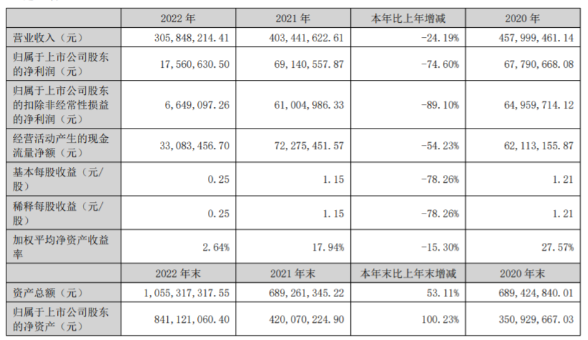 ICC訊 湖北東田微科技股份有限公司發(fā)布2022年年度報告。2022 年公司實現(xiàn)營業(yè)收入約 3.06 億元,較去年同期下降 24.19%,實現(xiàn)歸屬于上市公司股東的凈利潤約 0.18 億元,較去年同期下降 74.60%。分業(yè)務(wù)板塊看,公司攝像頭濾光片業(yè)務(wù)實現(xiàn)業(yè)務(wù)收入 2.35 億元,較去年同期下降 32.49%;公司光通信元件實現(xiàn)業(yè)務(wù)收入 0.66 億元,較去年同期上升 44.62%,光通信業(yè)務(wù)正逐步成長為公司新的增長點。
