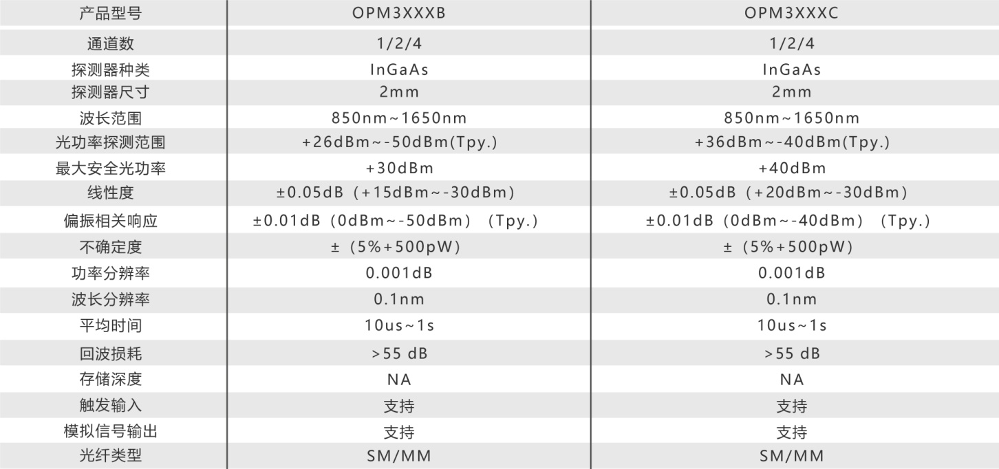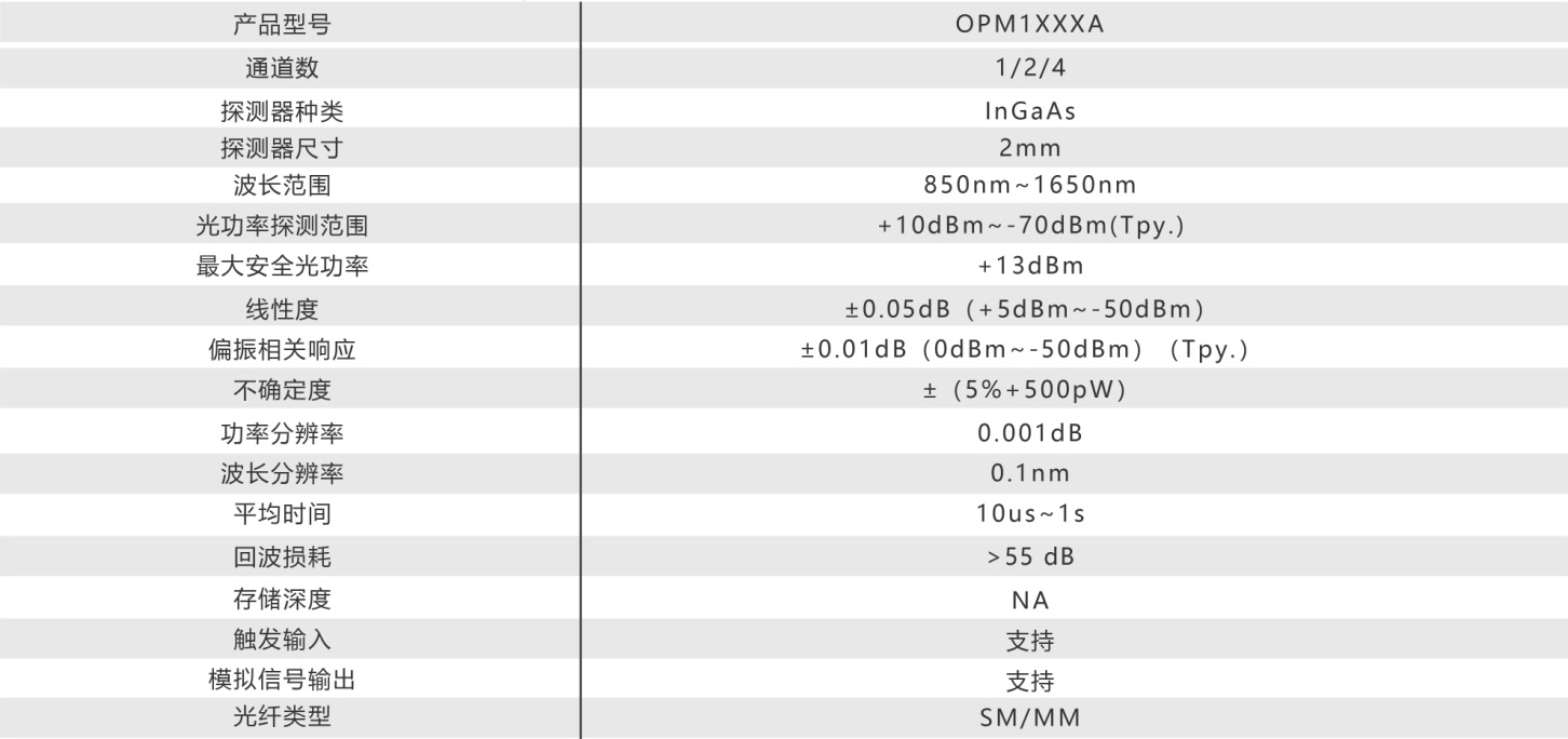 . 單模塊可提供1、2或者4路光功率探