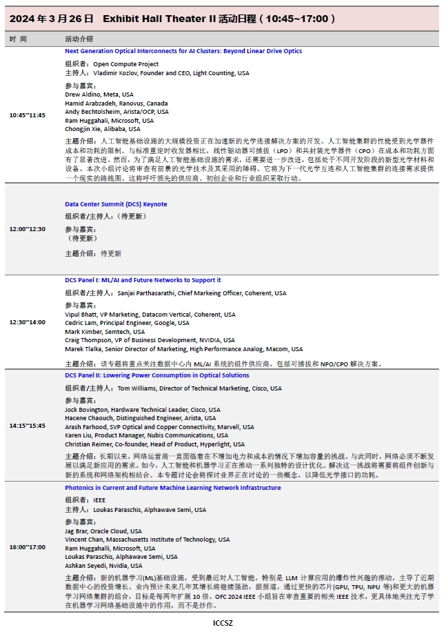 回顧:OFC2024:展場(chǎng)免費(fèi)會(huì)議三天日程安排(一號(hào)廳) - 訊石光通訊網(wǎng) - http://n2software.net/site/cn/News/2024/03/13/20240313080418702532.htm