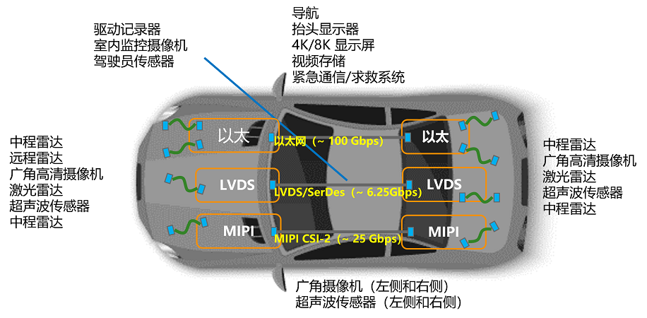 采用光纜線束可實現高達100Gb/s的超高速通信,并可應用于鉸接式公共汽車和拖車等超長車輛。其低損耗、高抗噪性、通信距離長、設計輕薄、布線方便等特點使系統(tǒng)構建不受電子控制單元(ECU)位置的限制。
