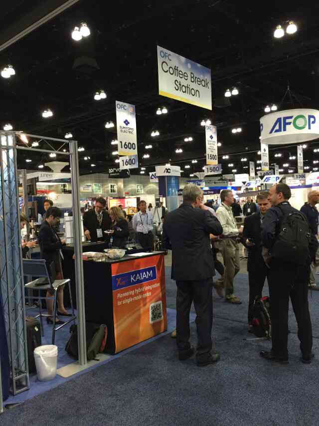 ICCSZ訊(編輯:Debi)美國(guó)光纖通訊展覽會(huì)及研討會(huì)(OFC) 于2015年3月24-26日在美國(guó)加州洛杉磯會(huì)展中心舉行,其中,技術(shù)研討會(huì)于3月22-26日舉行。本屆展會(huì)中國(guó)大陸及臺(tái)灣共117家企業(yè)參展,同比2014年增長(zhǎng)19%。洛杉磯時(shí)間3月25日,訊石客戶從現(xiàn)場(chǎng)傳回以下圖片,敬請(qǐng)欣賞。特別鳴謝昂納華博、中廣通張總、康寧際皓經(jīng)理等從現(xiàn)場(chǎng)傳回的圖片,也非常歡迎身在現(xiàn)場(chǎng)的朋友繼續(xù)為訊石提供圖片等信息!有人說(shuō),本屆OFC展上滿眼盡是華為的菊花紅。