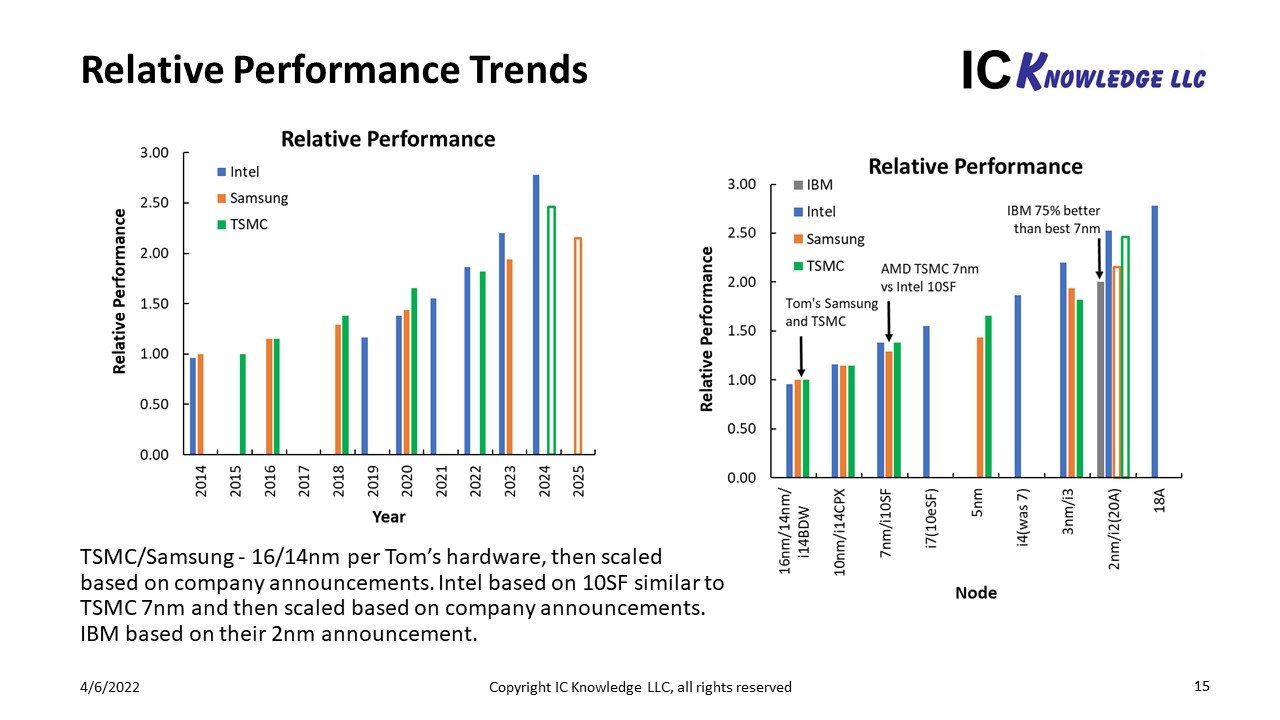 那么問題來了,假設(shè)未來幾年中Intel的進(jìn)度沒有問題,那么2025年時能不能超越臺積電?semiwiki網(wǎng)站還真的分析計算了這個問題。