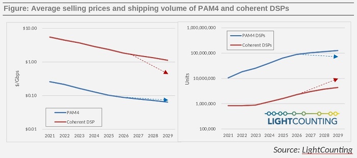 原文:LightCounting :: The battle between PAM4 and Coherent DSPs February 2024 - https://www.lightcounting.com/newsletter/en/february-2024-pam4-and-coherent-dsps-286