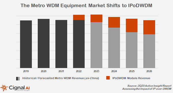 ICC訊(編譯:Nina)根據(jù)Cignal AI最新的IPoDWDM影響報(bào)告,城域WDM設(shè)備支出將很快被路由器中使用的可插拔光學(xué)器件所顛覆。IPoDWDM是一個(gè)有著20年歷史的概念,但新的因素,如400ZR的出現(xiàn)、架構(gòu)上不斷進(jìn)步的超大規(guī)模網(wǎng)絡(luò)運(yùn)營(yíng)商,以及不斷變化的流量和網(wǎng)絡(luò)管理趨勢(shì),將在2026年催化該技術(shù)的廣泛部署。