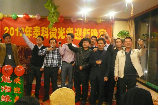 晚宴一開始公司總經(jīng)理鄭亮就發(fā)表新年致辭,他在致辭中說道:“回顧泰科微光學(xué)在過去一年取得的成績(jī),去年適逢公司四周年,公司也進(jìn)行了搬遷,公司規(guī)模進(jìn)一步擴(kuò)大,硬件上了一個(gè)新的臺(tái)階,通過四年的努力公司也打響了在業(yè)界的知名度。2011年在經(jīng)營方面也出現(xiàn)了生產(chǎn)的淡季和低潮,但是全體員工不離不棄,與公司風(fēng)雨同舟,使得公司不斷發(fā)展壯大,平穩(wěn)過渡。“海納百川,有容乃大”,我堅(jiān)信泰科微有大家的支持,實(shí)力會(huì)越來越強(qiáng),當(dāng)然員工的待遇也會(huì)越來越好。 展望2012,因?yàn)槭艿秸w外部環(huán)境影響,公司應(yīng)該積極改善生產(chǎn),計(jì)劃與管理,物料控制方面的不足,這也是高層高度重視的,公司成長(zhǎng)過程難免缺陷和不足,我們只有不斷改進(jìn)和提升,才能為以后發(fā)展奠定堅(jiān)實(shí)基礎(chǔ)。同時(shí)公司也將繼續(xù)以品質(zhì)為中心,隨市場(chǎng)變化而變化,以結(jié)果為導(dǎo)向。在管理方面也會(huì)進(jìn)一步加強(qiáng)績(jī)效考核管理,不斷發(fā)展變革,加強(qiáng)品質(zhì),成本,效率意識(shí),及時(shí)糾正缺失,推進(jìn)標(biāo)準(zhǔn)化,制度化改革。同時(shí)也希望加強(qiáng)員工間的溝通,希望大家以廠為家,懷著感恩回報(bào)的心態(tài),從我做起,共同迎接新一年的到來。 ”