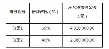 本項(xiàng)目中標(biāo)人數(shù)量為 2 個(gè),每個(gè)中標(biāo)人對(duì)應(yīng)的份額如下: