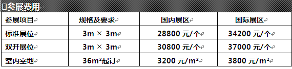 標(biāo)準(zhǔn)展位配置包括:每個(gè)標(biāo)準(zhǔn)展位三面墻板、二支射燈、一張咨詢(xún)桌、兩把椅子、地毯、220V交流電源插 座一只,中英文楣板等。室內(nèi)光地展位無(wú)任何配置:(需36㎡起租)。