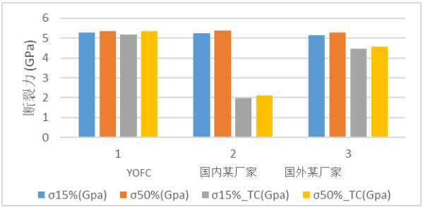 圖4 老化前后彎曲不敏感光纖的斷裂力測試數據(TC表示老化)