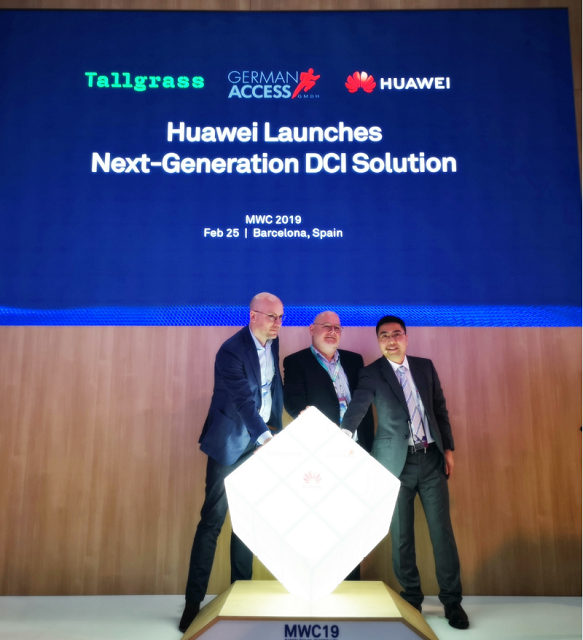 從左到右:荷蘭Tallgrass CEO Reindert Hommes,德國German Access CTO Lothar Frischholz, 華為企業(yè)傳送網(wǎng)產(chǎn)品線副總裁陳文波