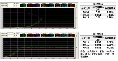 圖6 長(zhǎng)飛BI1015-A與BI1015-B光纖拉錐性能驗(yàn)證