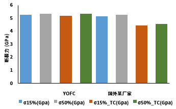 圖7 老化前后彎曲不敏感光纖的斷裂力測(cè)試數(shù)據(jù)(TC表示老化)