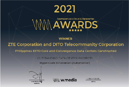 2021年12月,年度PMI(中國)項目管理大獎獲獎名單揭曉,中興通訊憑借在菲律賓DITO項目的出色表現(xiàn)獲“杰出項目獎”。同時,中興通訊工程服務PMO榮獲“年度PMO大獎”。在新加坡舉行的2021年W.Media亞太云和數(shù)據中心頒獎典禮上,中興通訊DITO數(shù)據中心項目榮獲W.Media超大型創(chuàng)新項目(自動化)大獎(見圖1)。