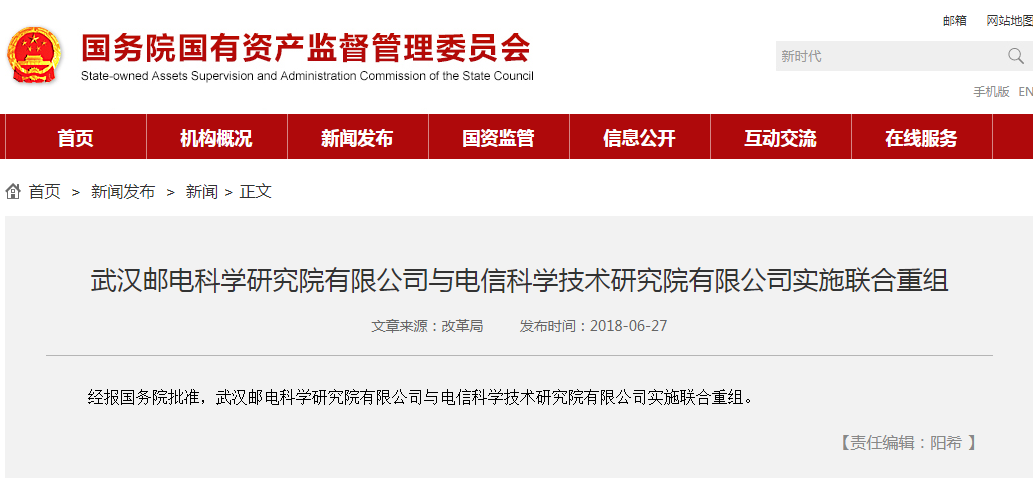 ICCSZ訊 經(jīng)報國務(wù)院批準,武漢郵電科學研究院有限公司與電信科學技術(shù)研究院有限公司實施聯(lián)合重組。