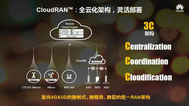 他還向C114解析了SingleRAN與CloudRAN之間的關(guān)系:“SingleRAN是CloudRAN的一部分,SingleRAN以站點(diǎn)為中心,解決當(dāng)前多制式共存共站點(diǎn)(射頻、基帶、傳輸、管理),為運(yùn)營商節(jié)省了TCO。CloudRAN是SingleRAN面向未來的網(wǎng)絡(luò)架構(gòu)演進(jìn),它以區(qū)域?yàn)橹行?,區(qū)域內(nèi)實(shí)現(xiàn)多連接提升速率與可靠性,匹配網(wǎng)絡(luò)由站點(diǎn)為中心向網(wǎng)絡(luò)為中心轉(zhuǎn)型、語音為中心向數(shù)據(jù)為中心的轉(zhuǎn)型;同時(shí),CloudRAN通過聚合多種頻譜、聚合多種制式、多站點(diǎn)多天線的協(xié)作,實(shí)現(xiàn)網(wǎng)絡(luò)效率的最大化。”