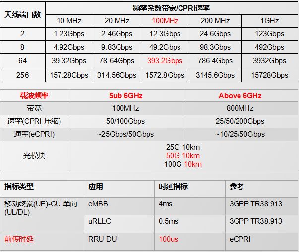 如果5G 前傳繼續(xù)采用CPRI接口,前傳將面臨巨大的帶寬挑戰(zhàn)。eCPRI接口雖然可以大幅度降低前傳帶寬,但對毫米波大帶寬基站,eCPRI帶寬仍可能達(dá)到100Gbps。