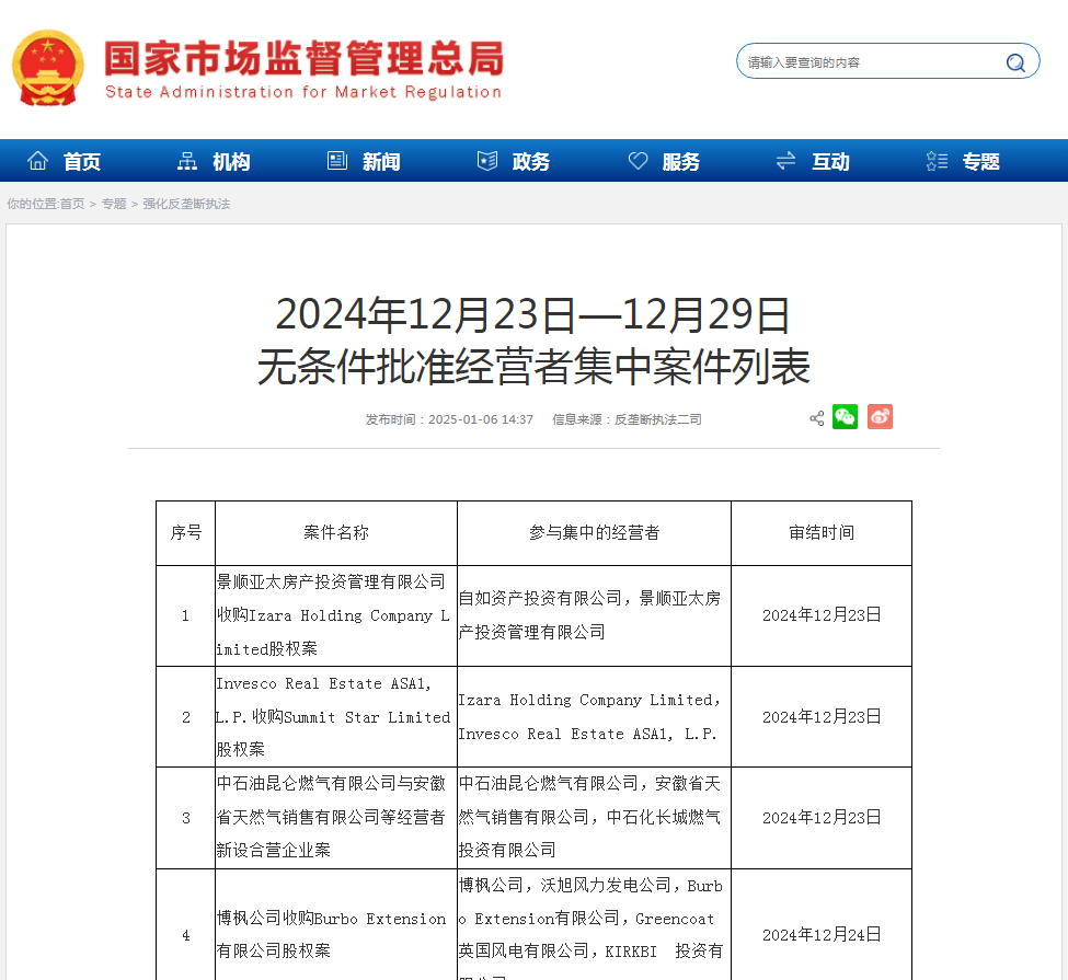 ICC訊 1月6日,國家市場(chǎng)監(jiān)督管理總局披露《2024年12月23日—12月29日無條件批準(zhǔn)經(jīng)營者集中案件列表》,其中就包括了立訊精密工業(yè)股份有限公司收購萊尼電纜有限責(zé)任公司股權(quán)案、立訊精密工業(yè)股份有限公司收購萊尼股份有限公司股權(quán)案。