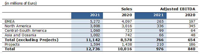 具體來(lái)看,2021年,普睿司曼集團(tuán)銷(xiāo)售收入增長(zhǎng)至創(chuàng)紀(jì)錄的127.36億歐元,有機(jī)增長(zhǎng)10.9%(其中第四季度增長(zhǎng)13.6%);不包括Projects部門(mén),有機(jī)增長(zhǎng)幅度為11.0%。