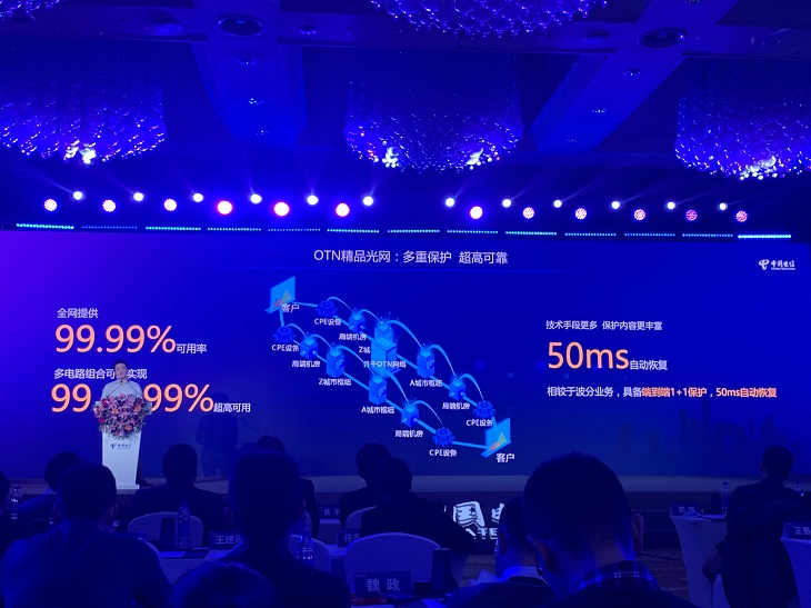 當(dāng)前政企客戶對(duì)網(wǎng)絡(luò)品質(zhì)的要求不斷提升,一直困擾政企客戶的痛點(diǎn)問題是網(wǎng)絡(luò)時(shí)延大、開通時(shí)限長(zhǎng)、網(wǎng)絡(luò)管理復(fù)雜、帶寬調(diào)整困難。中國電信精確瞄準(zhǔn)政企客戶高品質(zhì)網(wǎng)絡(luò)需求,在2019年正式開通了新一代OTN精品光網(wǎng)。