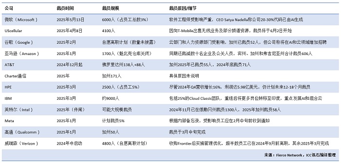 ICC訊 科技和電信行業(yè)在2025年繼續(xù)經(jīng)歷大規(guī)模裁員,多家知名企業(yè)宣布削減崗位計(jì)劃。以下是外媒Fierce Network整理的主要企業(yè)的裁員情況: