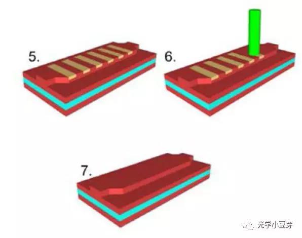 該方案利用Ge的離子注入形成光柵耦合器,測試完成后,可通過激光退火的方式擦除該光柵耦合器。Ge的注入導致Si的晶格無序,單晶硅變?yōu)榉蔷Ч?,而退火后,原子重新有序排列,轉(zhuǎn)變?yōu)閱尉Ч?,從而達到了擦除光柵耦合器的目的。下圖是擦除前后的結(jié)構(gòu)示意圖: