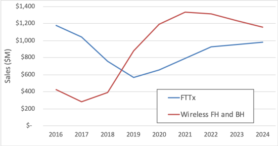 摘要:由于中國(guó)5G部署加速,2019年無(wú)線前傳和回傳應(yīng)用光模塊銷售額翻了一番以上,LC預(yù)測(cè)該細(xì)分市場(chǎng)在2020-2021年將繼續(xù)快速增長(zhǎng)。LC同時(shí)預(yù)測(cè)FTTx光器件市場(chǎng)將在2020-2024年恢復(fù)增長(zhǎng)。這一切都將由中國(guó)市場(chǎng)主導(dǎo)。