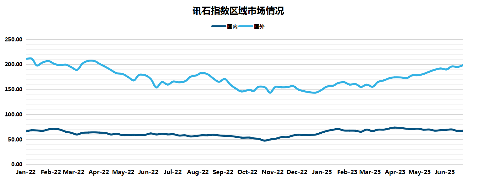 ICC訊 (編輯:Vicki)截止到6月30日,訊石統(tǒng)計的指數(shù)值為174.98,比上月的166.06增長8.92。Chatgpt 為代表的 AI 應(yīng)用正在得到快速發(fā)展,算力需求快速增長。促使800G光模塊、芯片需求增長。運營商和內(nèi)容運營商加速算力網(wǎng)絡(luò)部署。國內(nèi)光纖光纜商迎來新一輪的集采。整體來看,訊石股指6月呈增長趨勢。