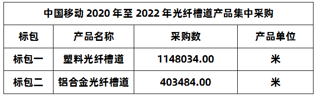 ICC訊(編輯:Anton)5月22日,中國移動通信有限公司發(fā)布2020年至2022年光纖槽道產(chǎn)品集中采購(招標(biāo)編號:CMCC20200000122),采購產(chǎn)品包括塑料光纖槽道及鋁合金光纖槽道產(chǎn)品。