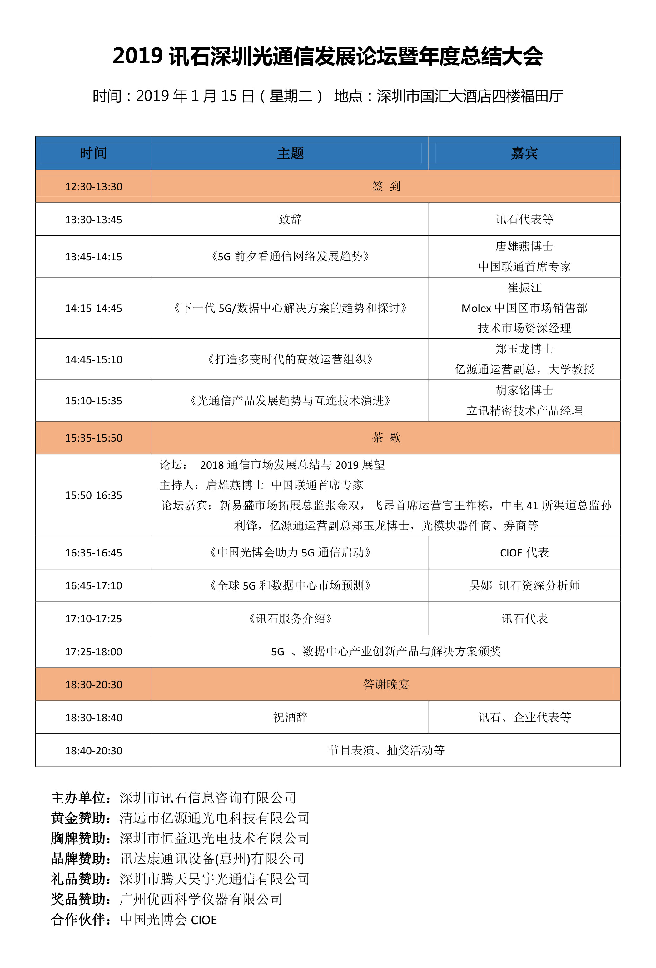 會議名稱:《2019訊石深圳光通信發(fā)展論壇暨年度總結(jié)大會》