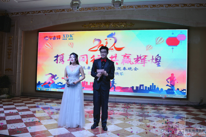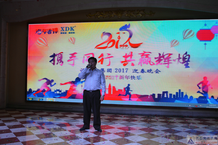 凌總致辭后,晚會(huì)正式開(kāi)始,訊達(dá)康管理層上臺(tái),由謝總致祝酒詞。
