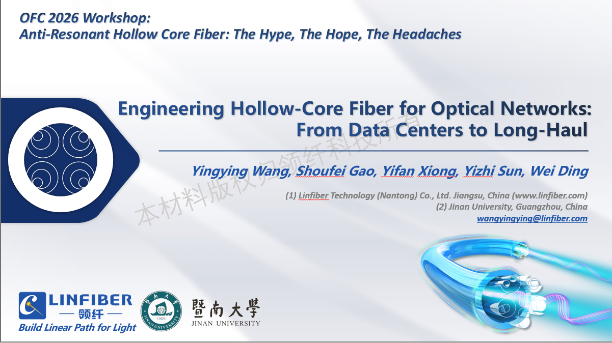 在本次Workshop中,領(lǐng)纖科技CEO 汪瀅瑩 連續(xù)第二年受邀作報(bào)告。相比去年的技術(shù)路徑討論,今年的內(nèi)容更加聚焦一個(gè)核心問題:不同應(yīng)用場景,究竟需要什么樣的空芯光纖?