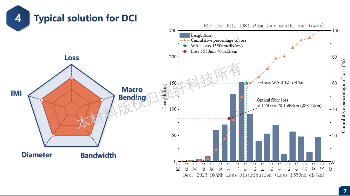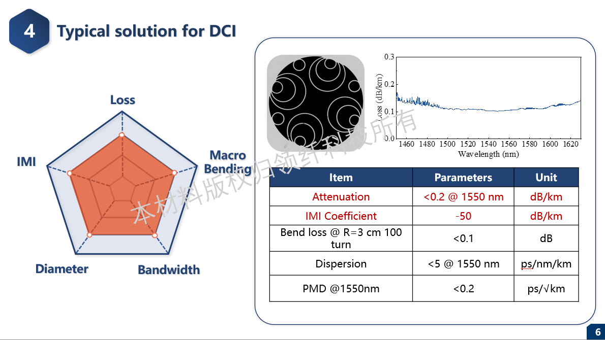 相比數(shù)據(jù)中心內(nèi)部(DCN)更多受限于生態(tài)與接口體系,在數(shù)據(jù)中心互聯(lián)(DCI)場景中,空芯光纖已經(jīng)展現(xiàn)出更現(xiàn)實(shí)的落地路徑。其核心原因在于,DCI處于一個(gè)典型的“工程平衡區(qū)間”:傳輸距離通常在百公里以內(nèi),對(duì)性能有明確要求,但不追求極限指標(biāo),允許在多項(xiàng)性能之間進(jìn)行合理取舍。 具體而言: