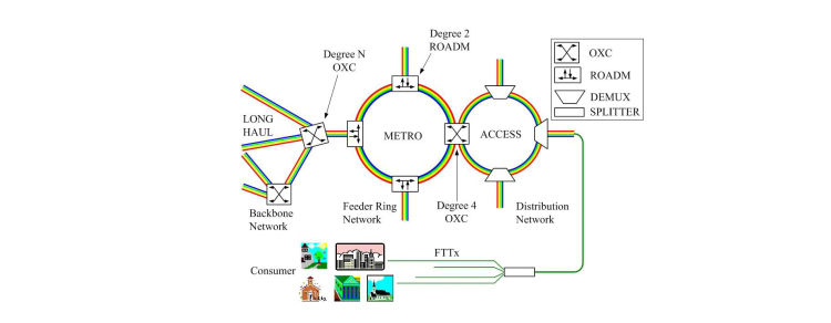 圖1. 基于ROADM技術(shù)的智能光網(wǎng)絡(luò)架構(gòu)