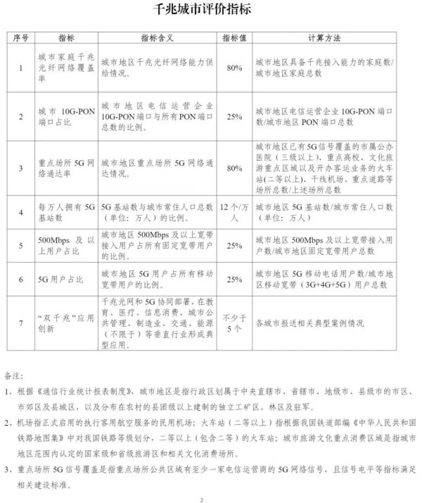 一是“雙千兆”網(wǎng)絡(luò)建設(shè)情況。包括城市家庭千兆光纖網(wǎng)絡(luò)覆蓋率、城市10G-PON端口占比、重點(diǎn)場(chǎng)所5G網(wǎng)絡(luò)通達(dá)率、每萬(wàn)人擁有5G基站數(shù)4項(xiàng)指標(biāo)完成情況,“雙千兆”建設(shè)方面的典型做法和案例等。
