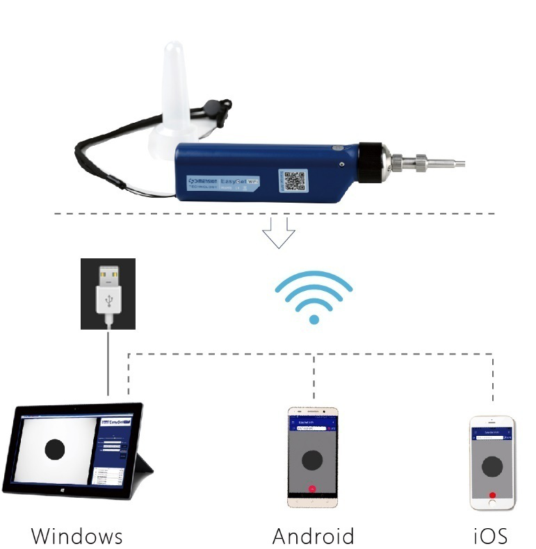 EasyGet Wifi可通過Wifi將圖像傳輸至各種智能終端設(shè)備,具備拍照存儲功能,用戶可以對光纖端面狀態(tài)進行在線查看或存儲,方便靈活。