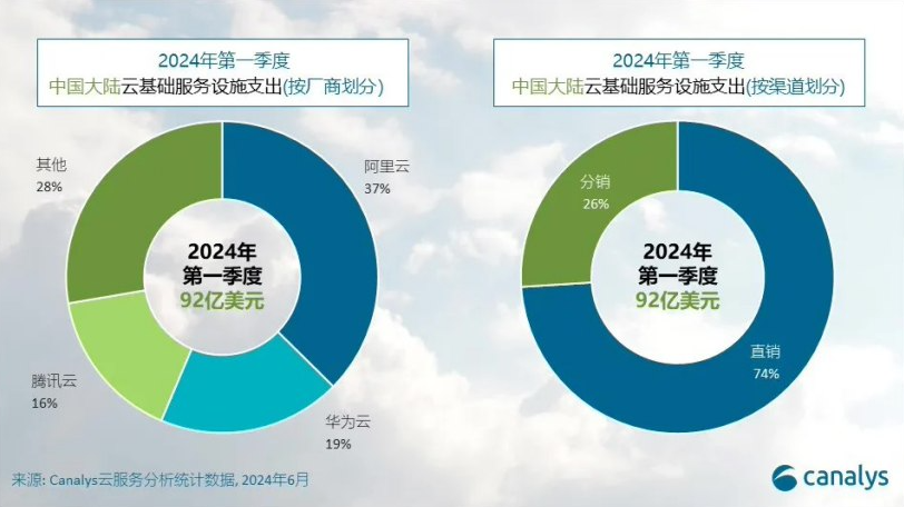 阿里華為騰訊前三,Canalys:2024Q1 中國大陸云服務(wù)支出同比增長(zhǎng) 20%