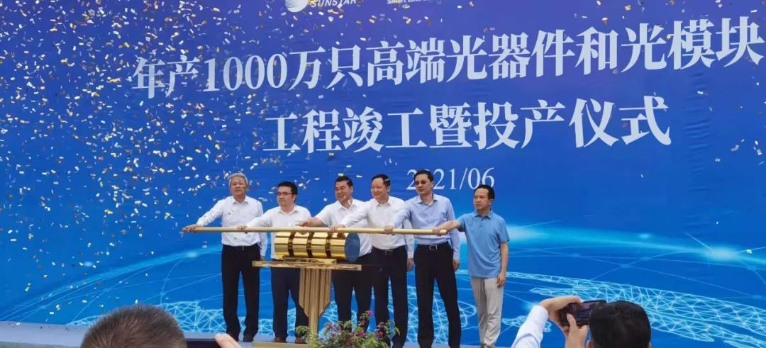 ICC訊 6月23日,長飛光纖光纜股份有限公司(以下簡稱“長飛公司”,股票代碼:601869.SH、06869.HK)控股子公司——四川飛普科技有限公司(以下簡稱“飛普科技公司”)在四川省眉山市舉行“年產(chǎn)1000萬只高端光器件和光模塊項目工程竣工暨投產(chǎn)儀式”,眉山市委常委、市政府常務(wù)副市長、眉山高新區(qū)黨工委書記劉先偉,眉山高新區(qū)黨工委副書記、管委會主任車智勇,長飛公司黨委書記、董事長馬杰,長飛公司董事郭韜,上海諾基亞貝爾股份有限公司執(zhí)行副總裁張赟,上海諾基亞貝爾IP和光網(wǎng)絡(luò)副總裁張寒崢,長飛公司執(zhí)行董事兼總裁莊丹,長飛公司高級副總裁、四川光恒通信技術(shù)有限公司(以下簡稱“四川光恒公司”)董事長閆長鹍,成都一誠投資管理有限公司董事長、四川光恒公司董事劉中一,四川光恒公司董事兼總經(jīng)理、飛普科技公司執(zhí)行董事兼總經(jīng)理秦志鴻,以及眉山高新區(qū)經(jīng)濟科技局、行政審批局、企業(yè)和服務(wù)中心的各位領(lǐng)導(dǎo)代表等出席儀式。