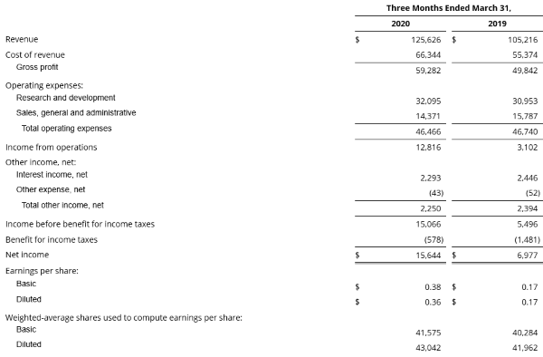 銷售收入為1.256億美元,去年同期為1.052億美元,同比增長19.39%。GAAP毛利率47.2%,非GAAP毛利率47.4%。GAAP營運收入1280萬美元,非GAAP營運收入2280萬美元。GAAP凈收入1560萬美元,非GAAP凈收入2330萬美元。EBITDA值1540萬美元,調(diào)整后的EBITDA值為2540萬美元。GAAP每股攤薄盈利36美分,非GAAP每股攤薄盈利54美分。