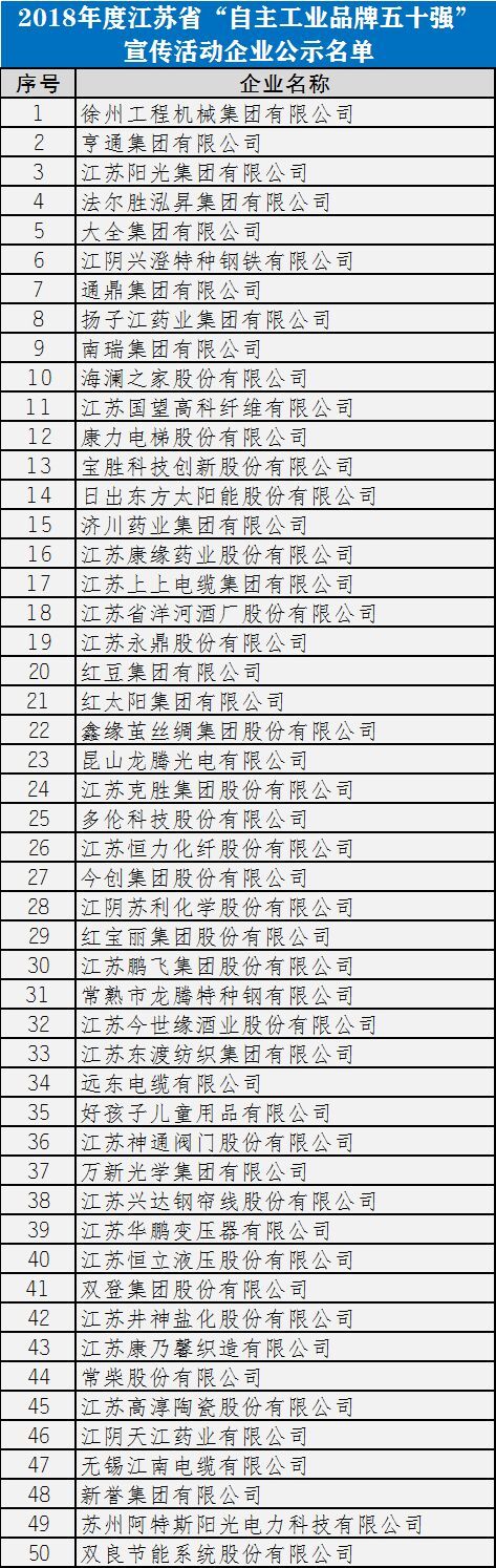 資料顯示,為推動(dòng)江蘇品牌戰(zhàn)略實(shí)施,提升江蘇品牌的影響力,大力發(fā)展品牌經(jīng)濟(jì),根據(jù)《省政府關(guān)于加快推進(jìn)質(zhì)量強(qiáng)省建設(shè)的意見》(蘇政發(fā)〔2012〕91號(hào))文件,江蘇省工信廳與江蘇省政府新聞辦、省市場(chǎng)監(jiān)督局聯(lián)合開展2018年度“自主工業(yè)品牌五十強(qiáng)”宣傳發(fā)布企業(yè)遴選工作。