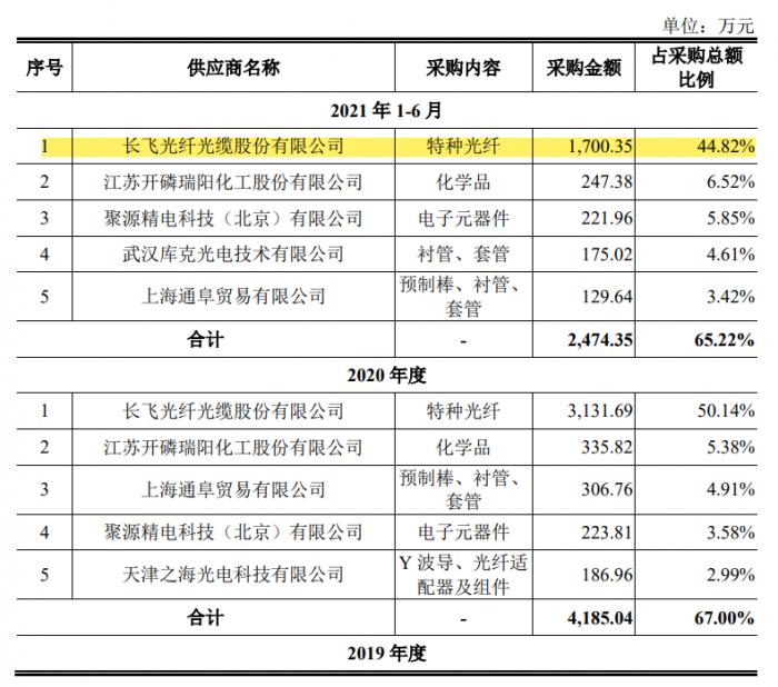 (圖說(shuō):長(zhǎng)飛光纖長(zhǎng)期位居長(zhǎng)盈通第一大供應(yīng)商,圖片來(lái)自招股書(shū))