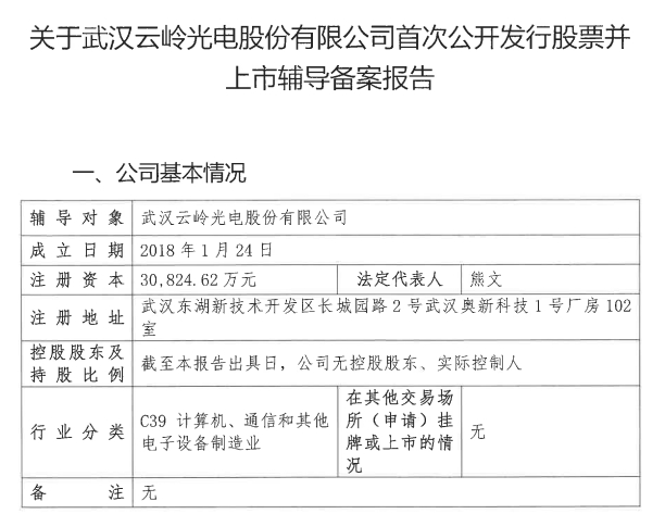 ICC訊 10月10日,證監(jiān)會(huì)披露了關(guān)于武漢云嶺光電股份有限公司(簡(jiǎn)稱“云嶺光電”)首次公開(kāi)發(fā)行股票并上市輔導(dǎo)備案報(bào)告。9月21日,云嶺光電與海通證券簽署了上市輔導(dǎo)協(xié)議,計(jì)劃在2023年至2024年2月進(jìn)行上市前輔導(dǎo)工作。