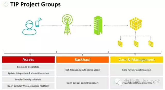 再看看TIP的項目組成,包括接入、回傳和核心&管理三大項目組,這幾乎涵蓋了整個通信網(wǎng)絡(luò)領(lǐng)域。